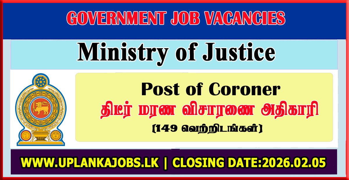 Applications are invited to make appointments for the post of Coroner for the vacancies that exist in the Divisional Secretary’s Divisions under Section 108 of the Criminal Procedure Code No. 15 of 1979. The list of vacancies and the application form can be downloaded from the www.moj.gov.lk website of the Ministry.