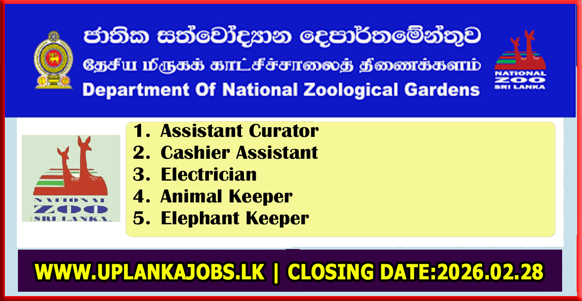 Calling Applications for the Posts of Assistant Controller/ Cashier Assistant/ Electrician/ Animal Keeper/ Elephant Keeper at the Department of National Zoological Gardens – 2026