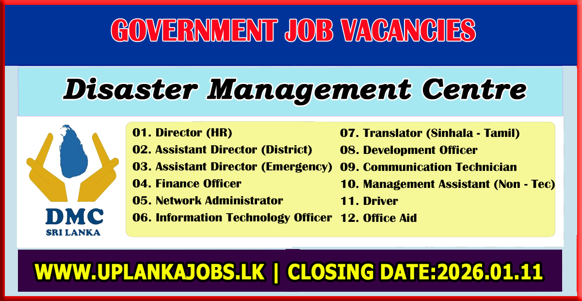 Applications are called from Sri Lankan citizens to fill the vacancies mentioned at the Disaster Management Centre.