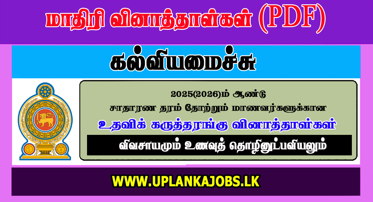 GCE OL 2025 Agriculture Tamil Medium Model Paper Download