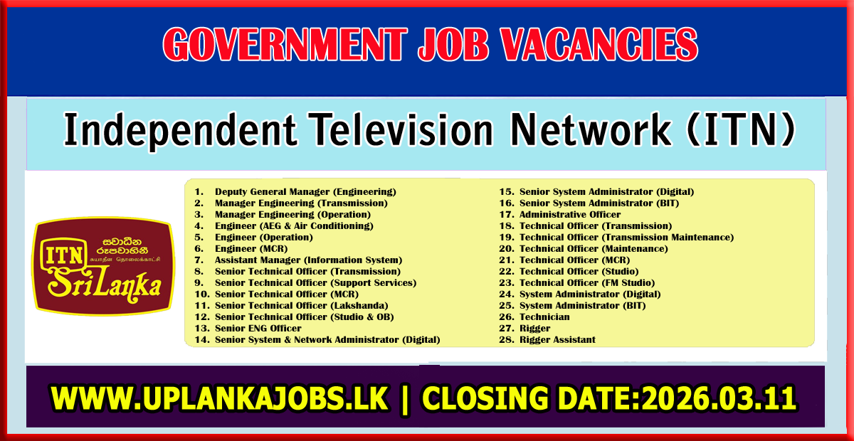 Applications are invited for the following post of ITN from citizens of Sri Lanka possessing the following qualifications and experience.