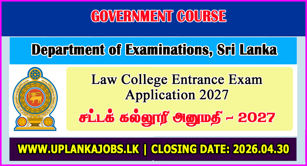Applications are called for the admission of students to the Sri Lanka Law College for the Academic Year 2027 (full-time course) from 9.00 a.m. on 30 March 2026 to 9.00 p.m. on 30 April 2026 on the Online System of the Sri Lanka Examinations Department.