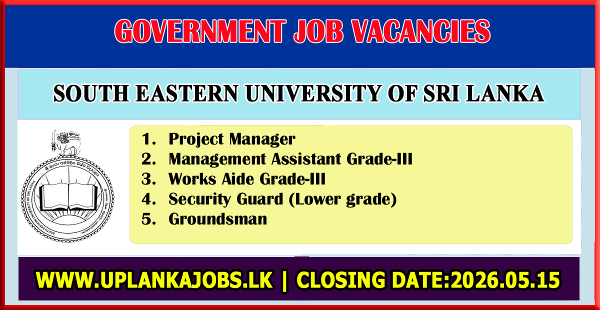 Government Job VacanciesSouth Eastern University of Sri Lanka Vacancies 2026 April 19, 2026 - by admin - Leave a Comment South Eastern University of Sri Lanka Vacancies 2026 Ad Notice – English Download Salary Details Download Application Download Closing Date 2026.05.15 WhatsApp Group Join Here