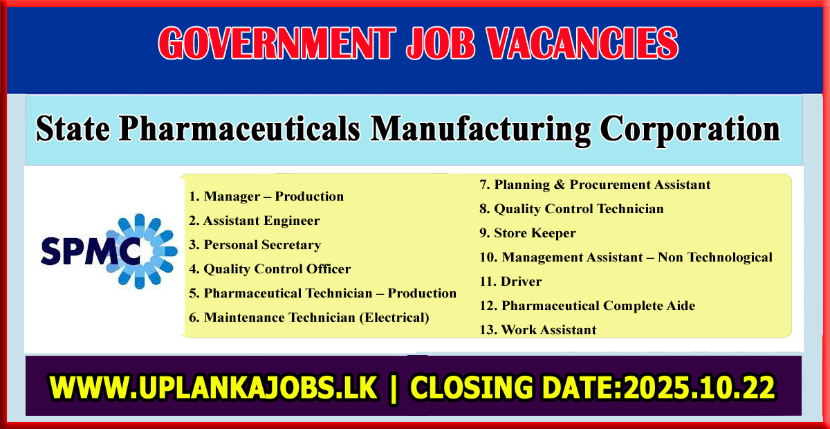 Applications are invited from the citizens of the Democratic Socialist Republic of Sri Lanka who possess the requisite qualifications to fill the following vacancies in the State Pharmaceuticals Manufacturing Corporation.